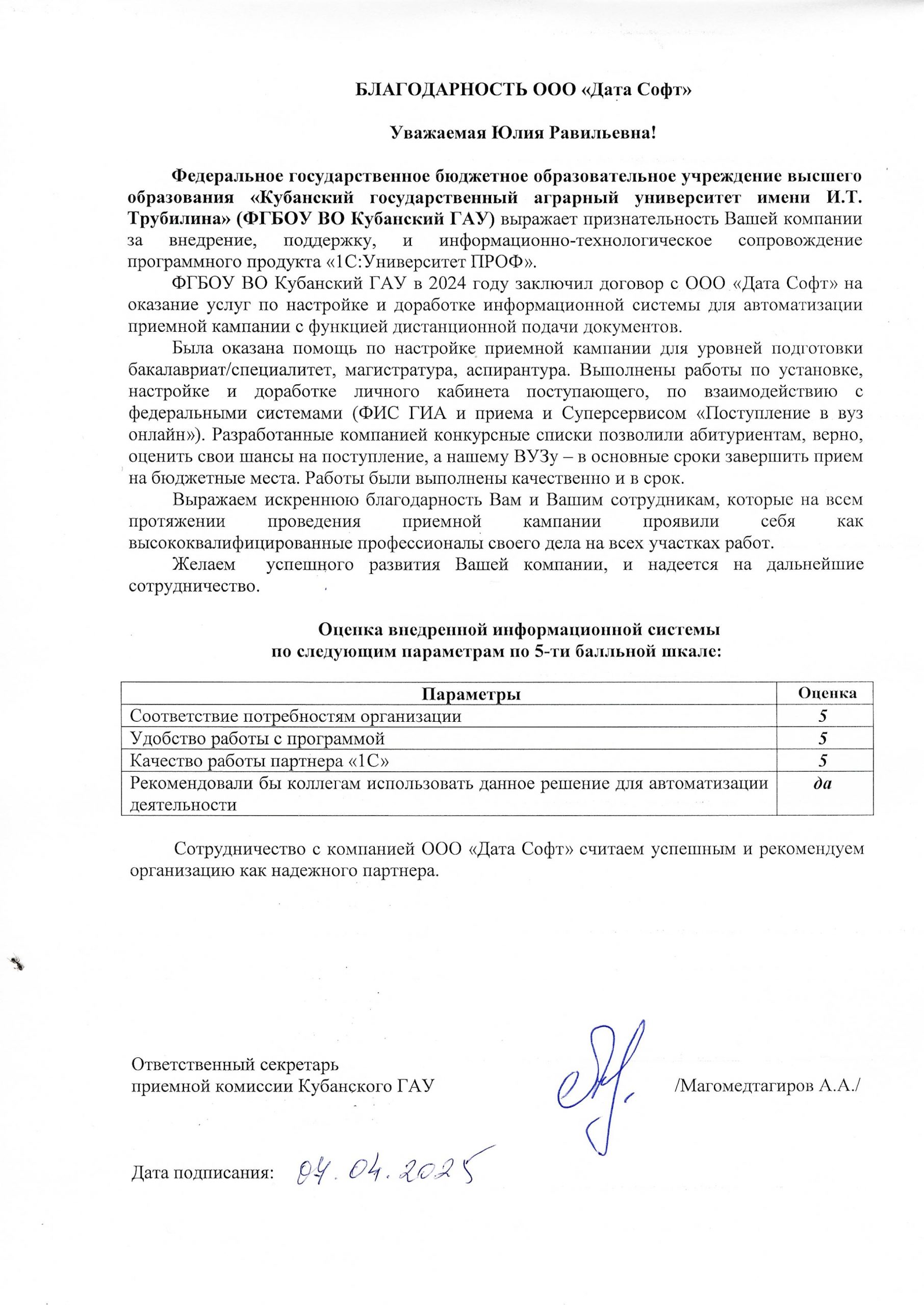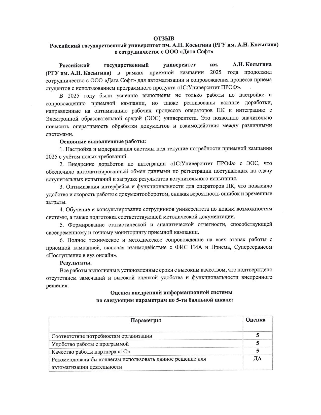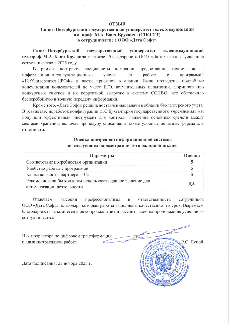 Дата Софт — награждение в номинации «Образование, культура, наука» конкурса «1С: Проект года 2024»